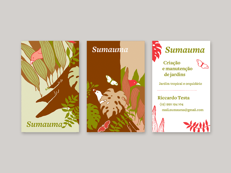 Caluã Pataca and Adriana Ramos designed these gorgeous business cards for Sumauma, a landscaping company with a twist: they are specialized in “ecoscaping techniques”, creating (and thinking of) gardens as mini biomes. There’s an ecological aspect to this, but also…