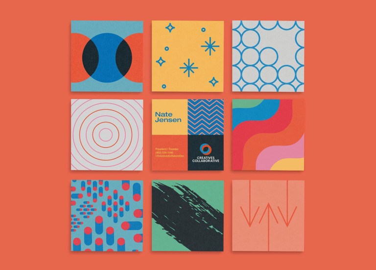Cody Fenske designed these business cards for Creatives Collaborative, an interdisciplinary creative community that hosts creative meetups. “Creatives Collaborative is an inclusive space for creative entrepreneurs to network, share work, and nerd out about their craft,” Cody said. “The four…